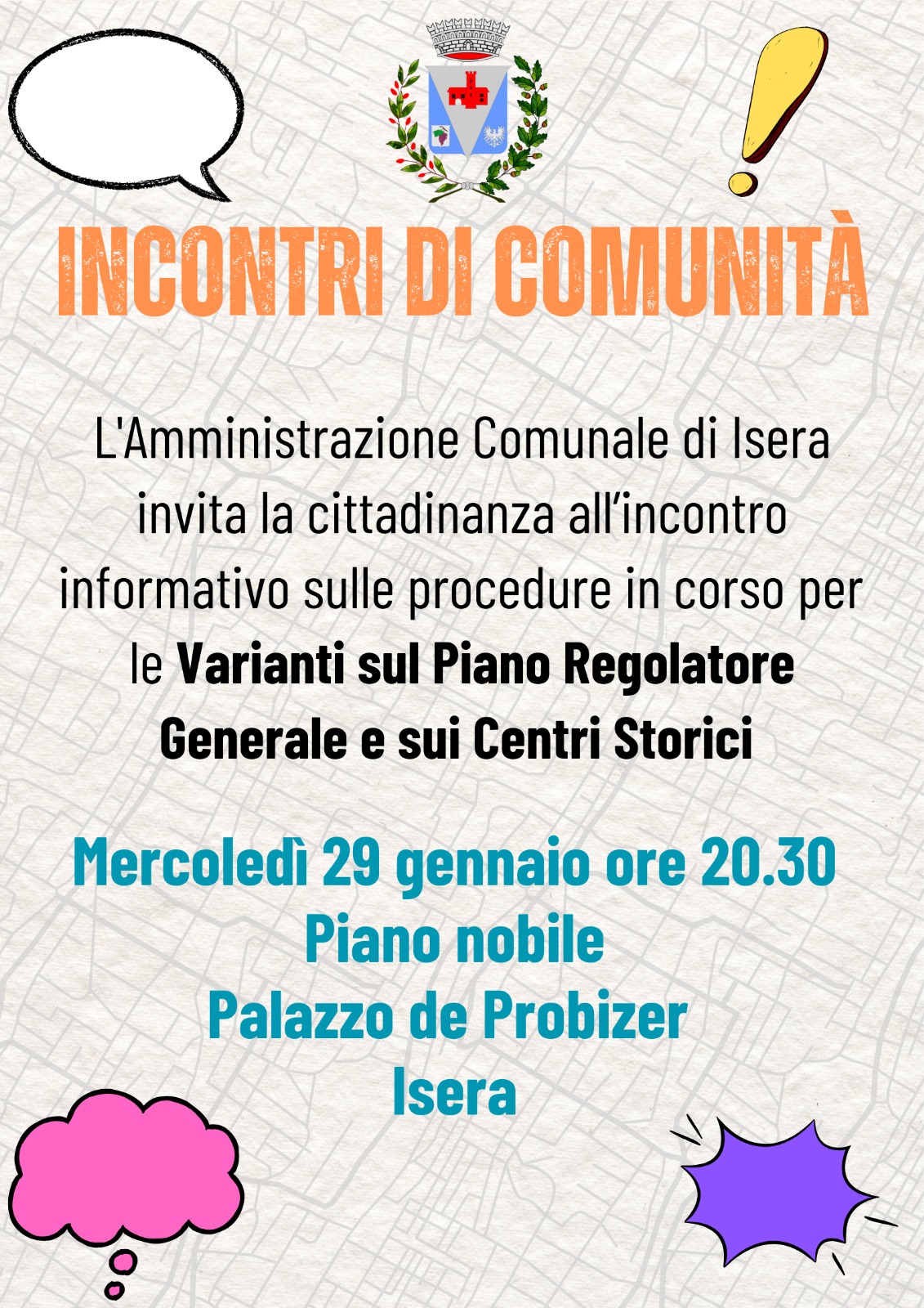 L’Amministrazione Comunale di Isera organizza un incontro informativo sulle procedure in corso per le Varianti sul Piano Regolatore Generale e sui Centri Storici.