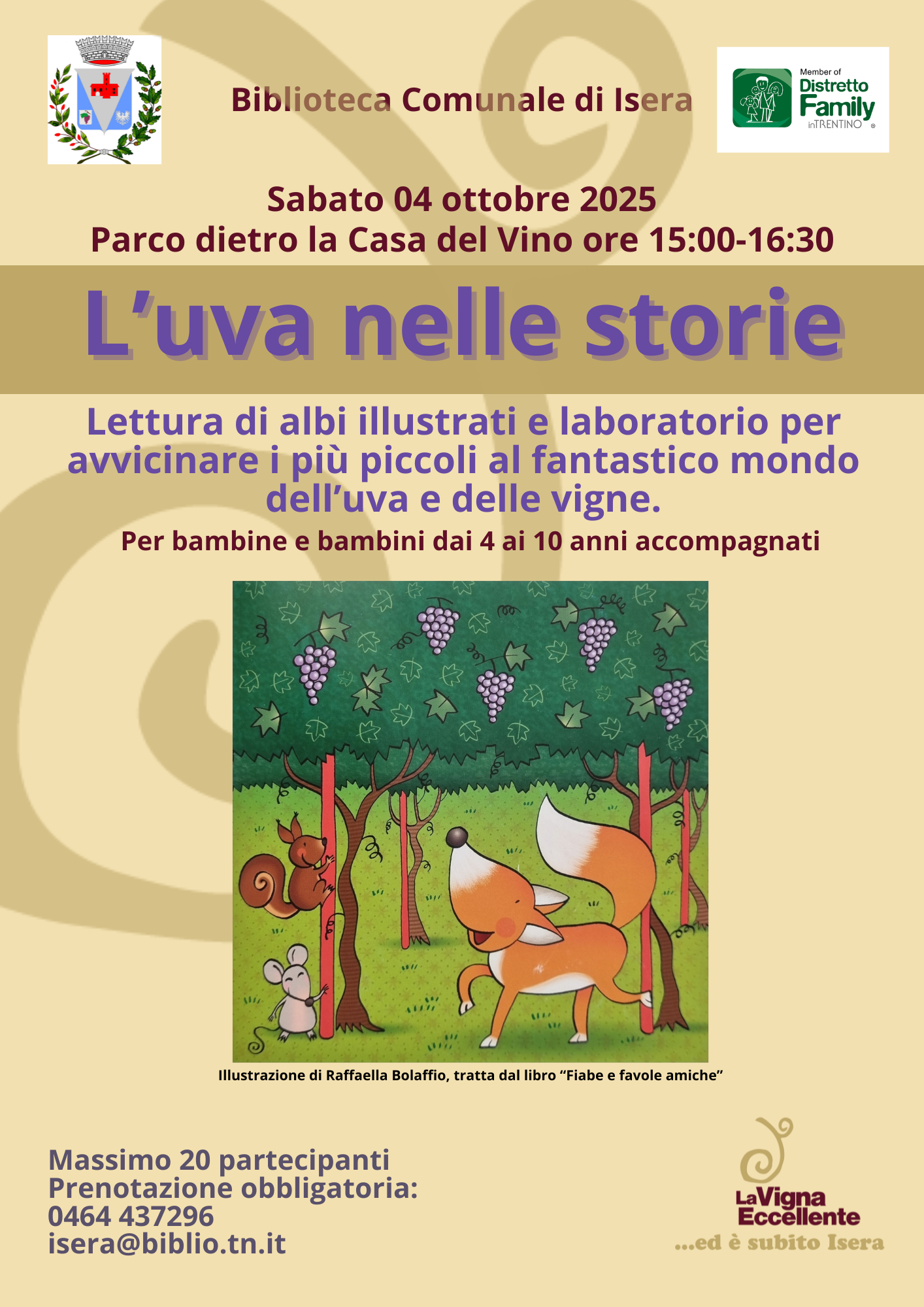lettura di albi illustrati e laboratorio per avvicinare i più piccoli al fantastico mondo dell'uva e delle vigne.