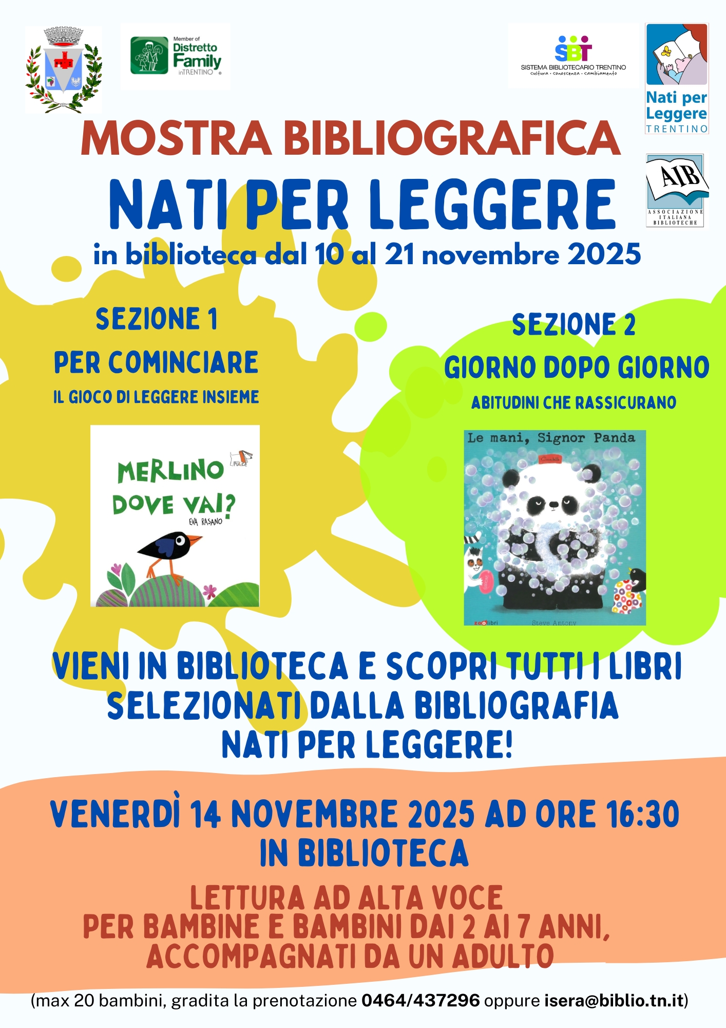 gradita la prenotazione al numero telefonico 0464 437296 o all'indirizzo mail isera@biblio.tn.it