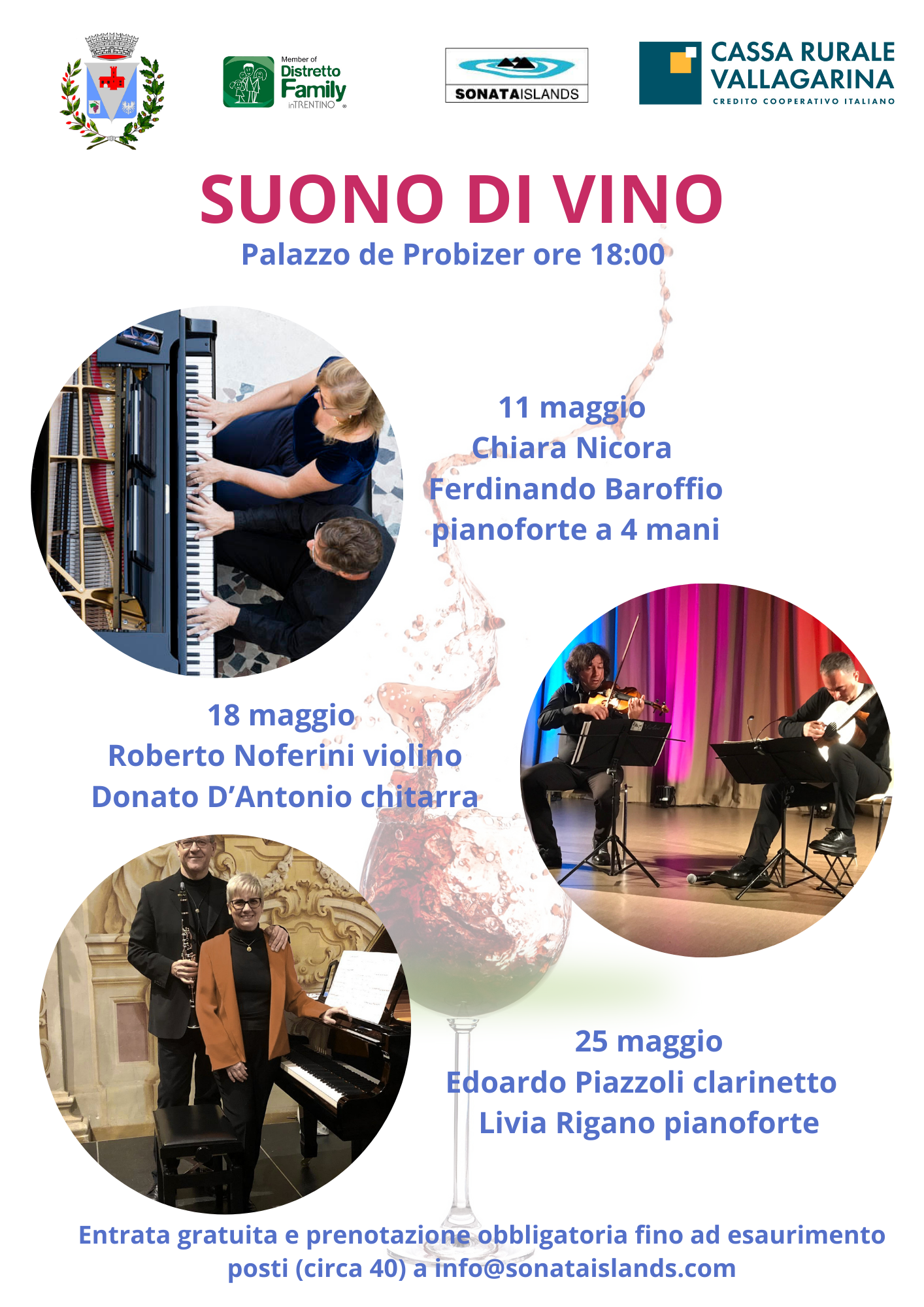 Nella sala settecentesca al primo piano del Palazzo de Probizer, gli appuntamenti di musica cameristica saranno seguitai dalla degustazione di un vino della Vallagarina, offerto dalla Casa del Vino, sede della cooperativa nata per valorizzare la Vallagarina e i suoi prodotti.